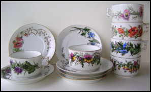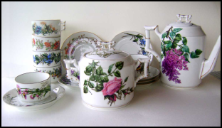 Service en porcelaine peint par Emilie Humbert-Soulary - Collection familiale privée.