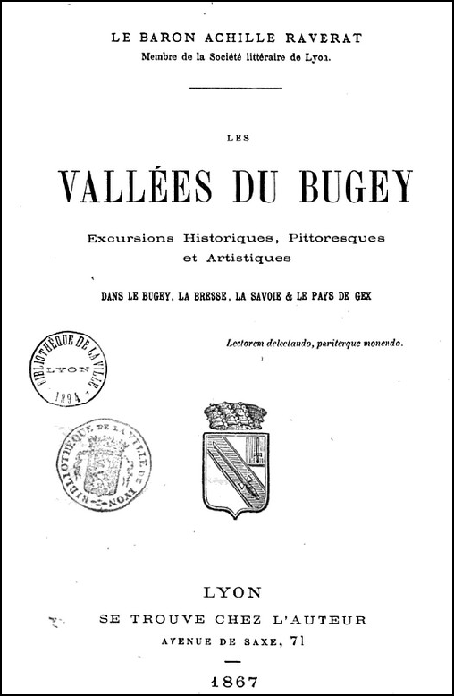 "Les Vallées du Bugey" tome 1 paru en 1867