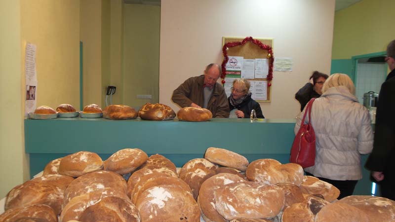 Monsieur Georges Bouvier, maire de Rossillon, devant les pains à l’ancienne cuits au feu de bois et tout justes sortis du four communal