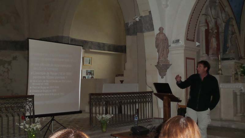 Le dimanche matin, la chorale de Virieu le Grand a ravi les oreilles des auditeurs présents dans l’église et l’après midi un auditoire de passionnés a été captivé par la conférence de Mr Dominique Tritenne sur le grand peintre Jean Baptiste Louis Guy, un des peintres majeurs de Rossillon.