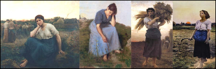scènes de la vie paysanne comme ces bergères ou ces coupeuses d'herbe ou de blé.